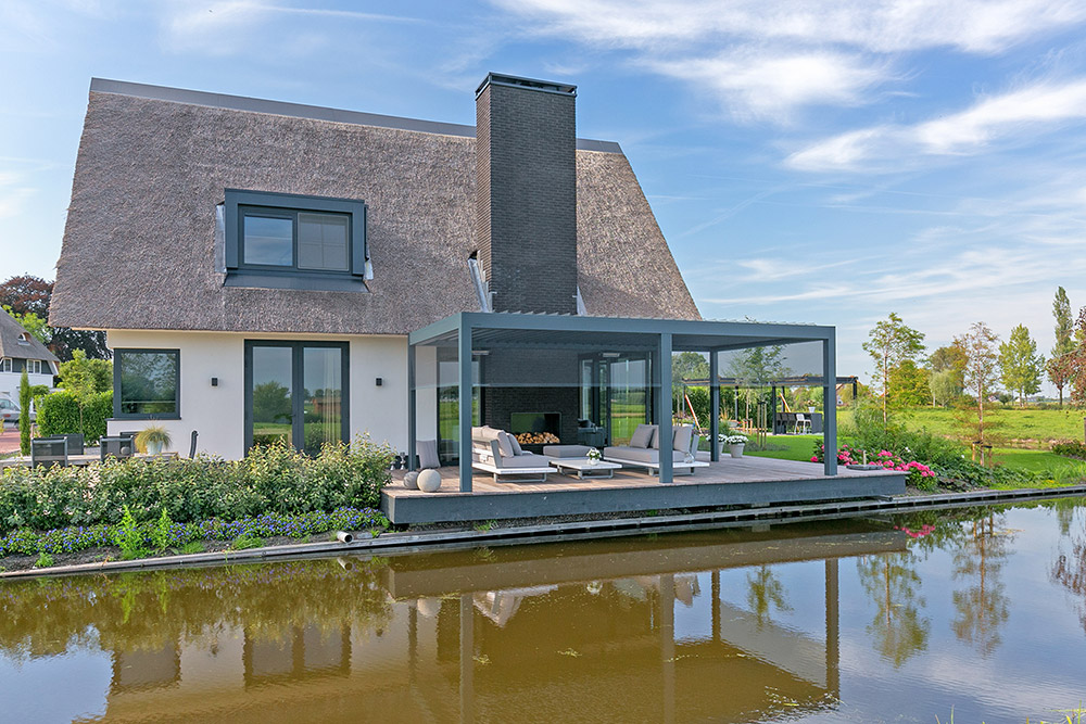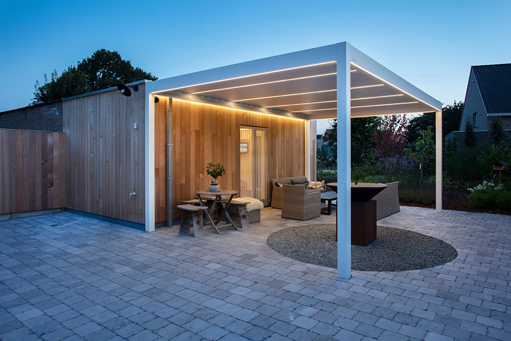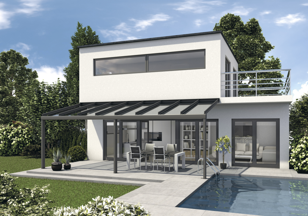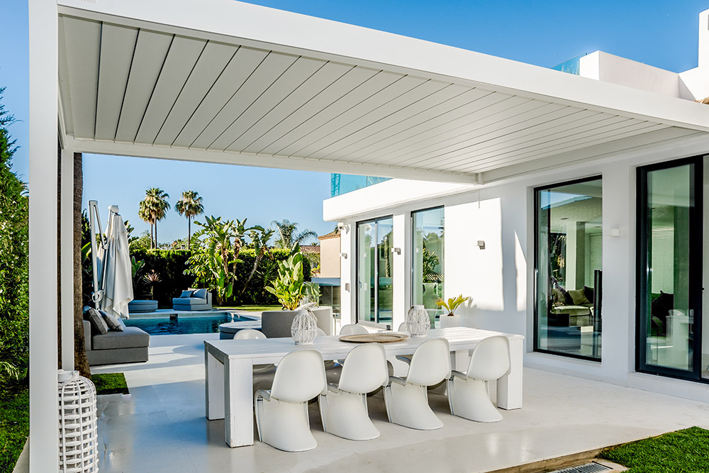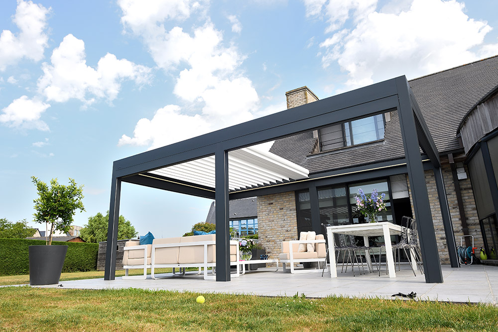 Außerdem empfehlen wir eine bioklimatische Pergola. Diese sieht nicht nur stylish aus, sondern ist auch ganzjährig nutzbar und schafft eine echte Wohlfühlatmosphäre.